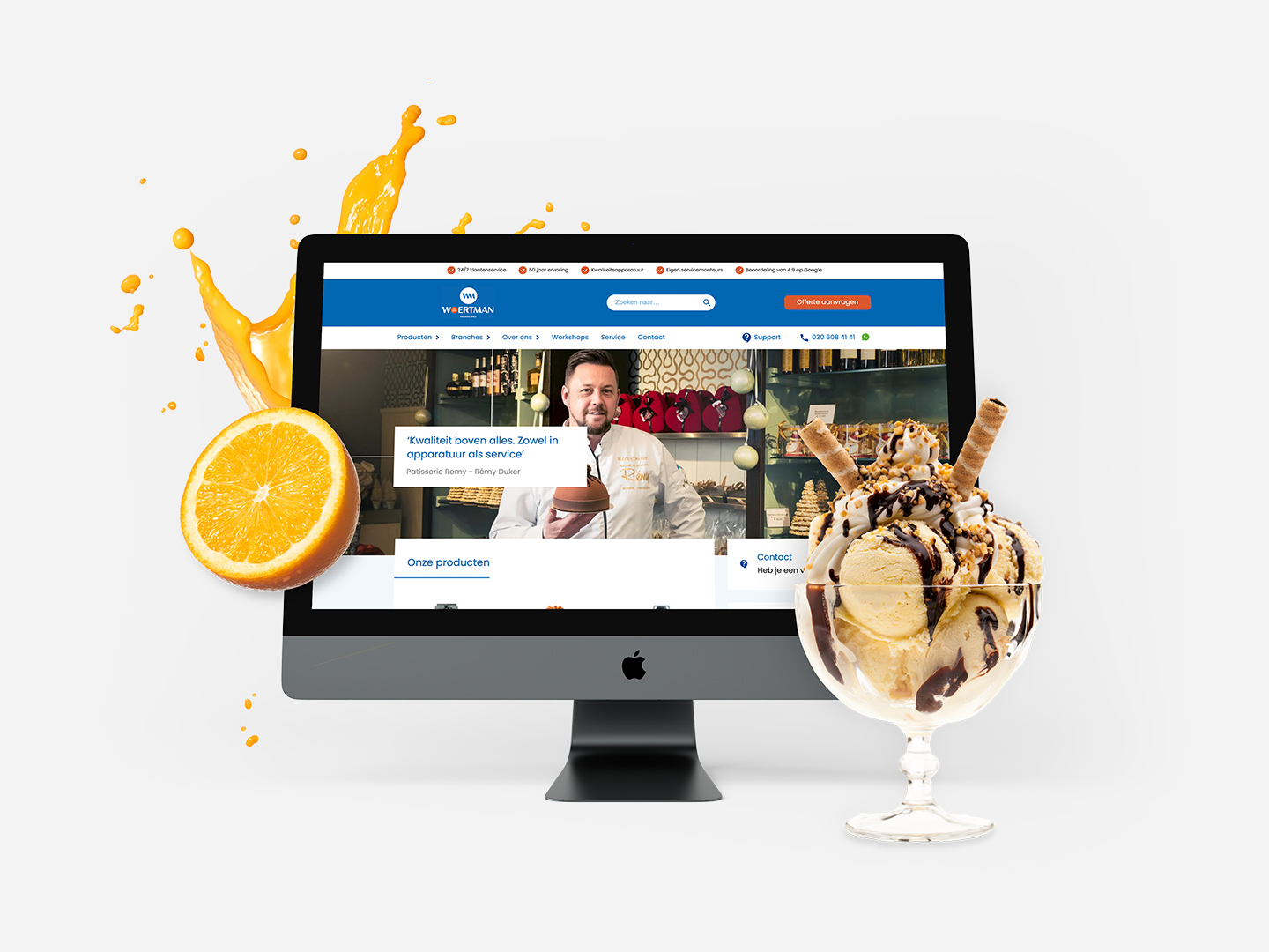 Een goede website toont alleen informatie waar de bezoeker op zit te wachten. Waardoor hij dus niet eindeloos hoeft te klikken tot hij de gewenste content vindt. Om de uitstraling persoonlijk te maken, adviseerden wij Woertman om producten te fotograferen in de werkomgeving van haar klanten. Het tonen van vakmanschap en passie voor het beroep sluit aan op de kernwaarden van Woertman.
