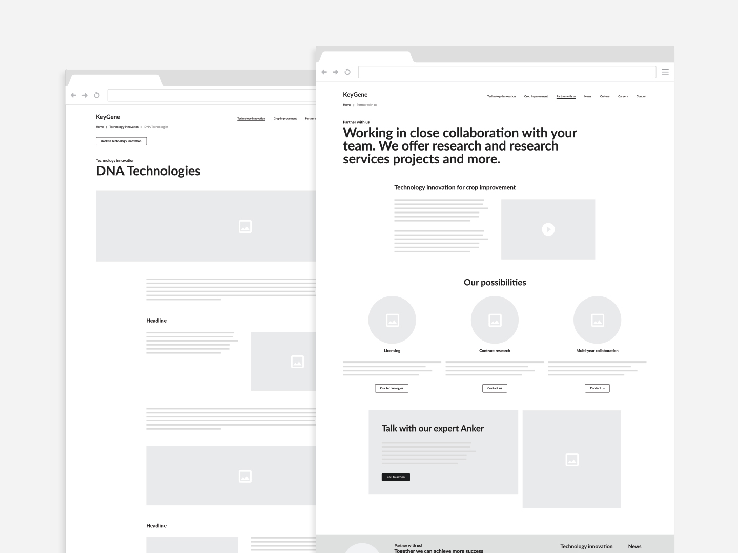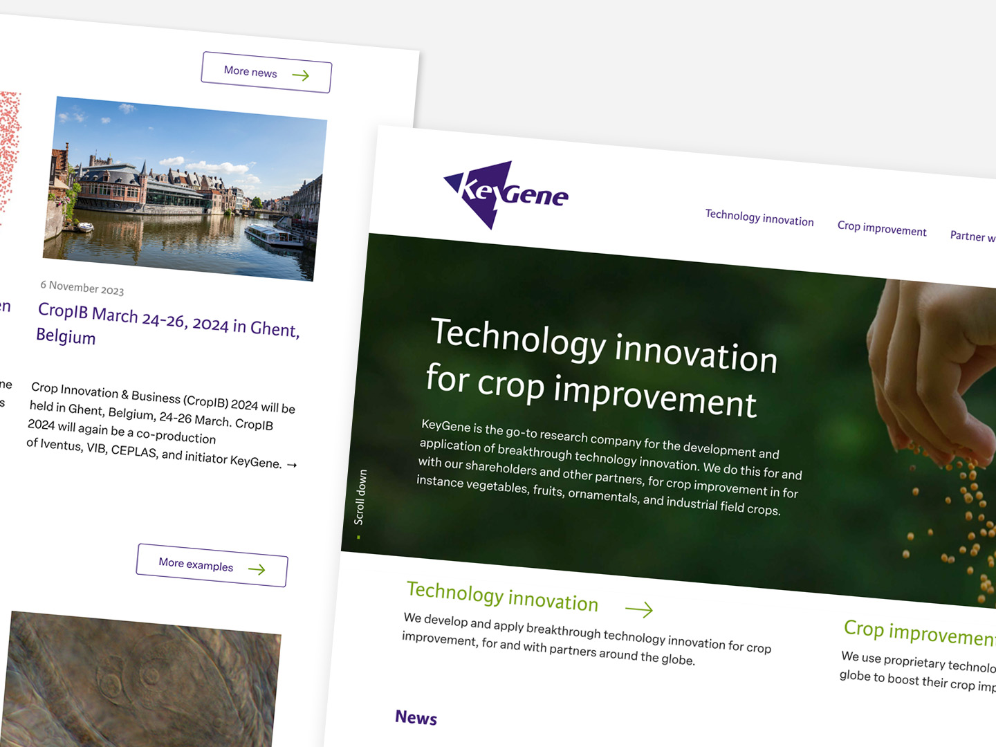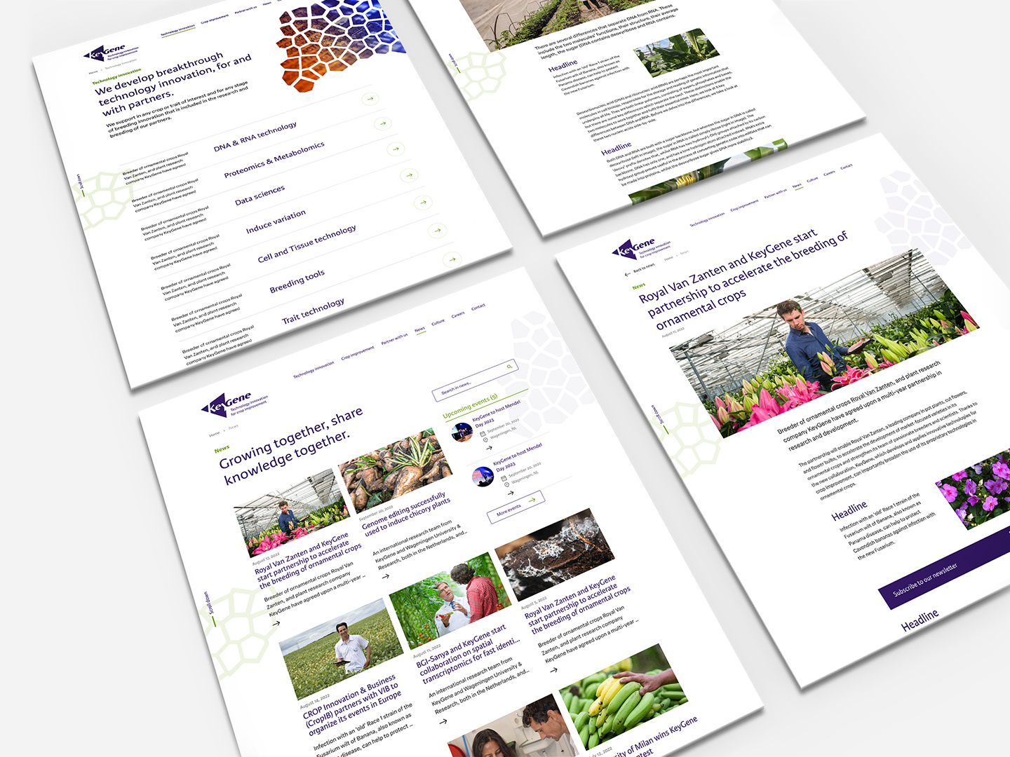 De website was toe aan vernieuwing. Daarvoor was de vraag belangrijk: Wat wil Keygene uitstralen als bedrijf en merk? Het antwoord ‘Een innovatief bedrijf, dat positieve impact heeft op de wereldwijde plantenveredeling’ hebben wij gebruikt als fundament voor de nieuwe website. Zoals bij elk project denken wij ook graag mee om samen de koers te bepalen.